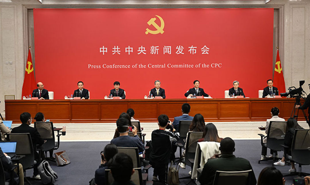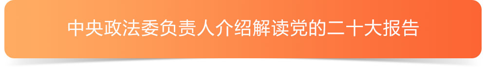 10月24日,中共中央举行新闻发布会,介绍解读党的二十大报告。中央政法委秘书长陈一新,中央政策研究室主任江金权,中央改革办分管日常工作的副主任、国家发展改革委副主任穆虹,中央纪委国家监委宣传部部长王建新,中央办公厅副主任兼调研室主任唐方裕,中央宣传部副部长孙业礼等有关方面负责人解读党的二十大报告并回答记者关心的问题。
